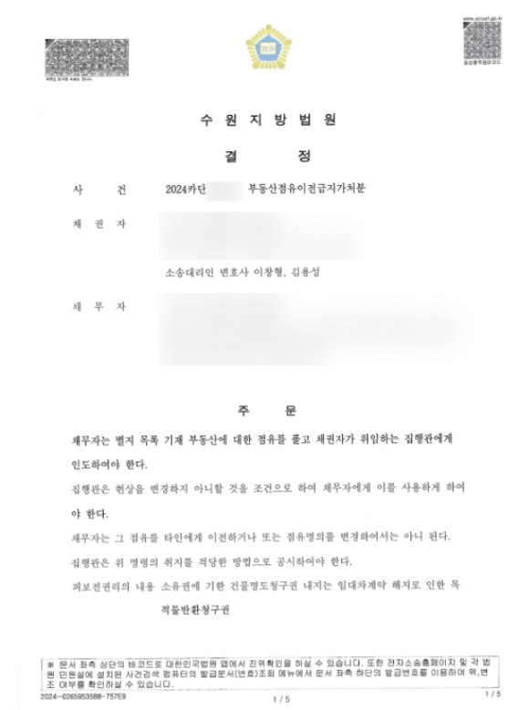 단, 피고로 지정하지 않은 자가 점유 중이라면, 기존 임차인과 현 점유자까지 피고로 지정하여 가처분을 다시 신청해야 한다는 점, 꼭 기억해 주세요!