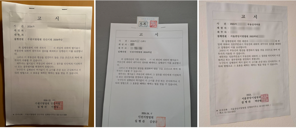 점유자를 확인하는 과정에서 실제 점유자가 피고와 일치한다면, 부동산 내부에 고시문을 부착한 뒤 집행은 종료됩니다.